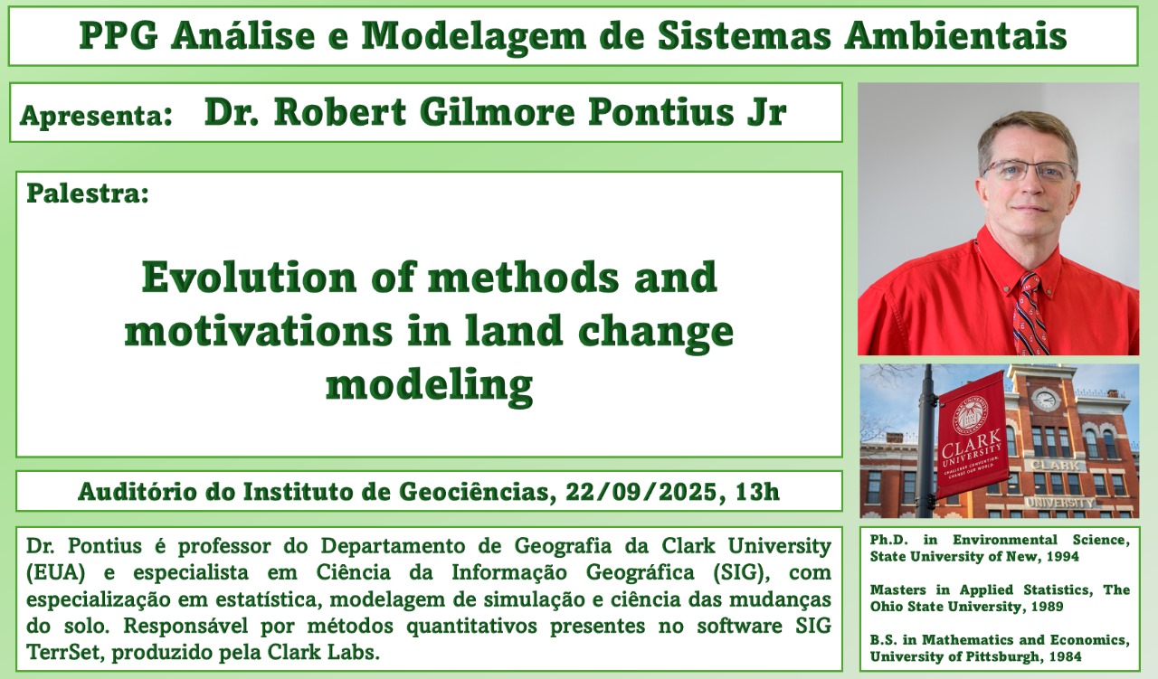 CONVITE: Palestra Evolution of methods and motivations in land change modeling – Robert Pontius Será online: Here is the updated link: https://clarku.zoom.us/j/94225859828 Secretaria2025-09-22T11:42:06-03:0022 de setembro de 2025|Notícias|